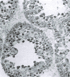 Fig.2 Distribution of bax mRNA in mouse testes, as detected by in situ hybridization with bax cDNA probe ×200