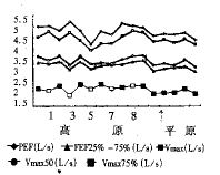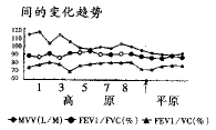 图5MVV,FEV1/VC,FEV1/FVC在高高,高平原交替期间的变化趋势