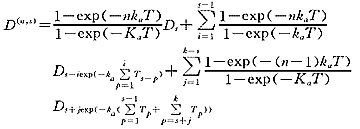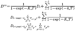 ,是第n个周期中第s次给药瞬间吸收室中的药量D(n,s)及稳态期间第s次用药后瞬间吸收室中的药量D(s)为: