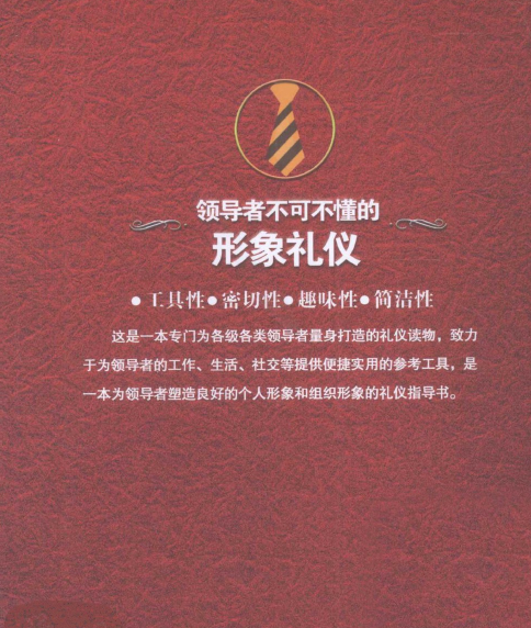 领导者不可不懂的形象礼仪是专为领导者打造的礼仪读物,通过阅读这款书籍,可以帮助你在下级员工面前塑造良好的个人形象和组织形象奉献绵薄之力。