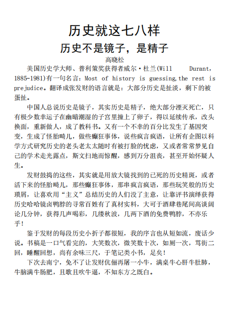 历史就这七八样是作者写的有关于很多历史典故的小段子,揭露了历史上很多的不为人知的隐私,包括吃喝拉撒和婚丧嫁娶,文化人有关的故事等等。