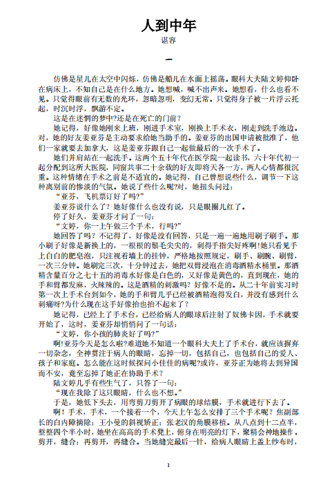 人到中年是作者通过对知识分子女医生的悲苦一生的描述,反映了主人公的艰难奋斗,不畏挫折,却最终败给了命运的坎坷一生,引人深思。