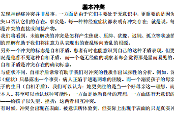 还有,两者在意识程度上有差别。正常范围内的冲突可以完全是有意识的,而神经症冲