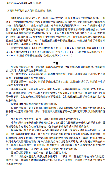 39) 、 《自我分析》(1942) 《我们内心的冲突》(1945) 、 《神经症与人的成长》(1