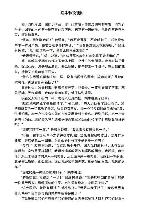 牛羊。园子的中间有一棵花繁的玫瑰树,树下有一只蜗牛,他体内有许多东