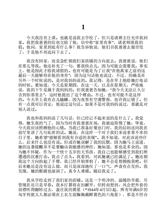 里。”儿时的这种生活经历与《无命运的人生》中少年柯韦什的经历颇