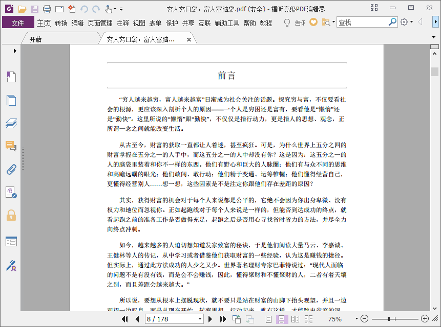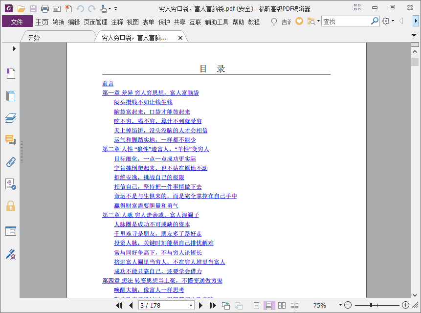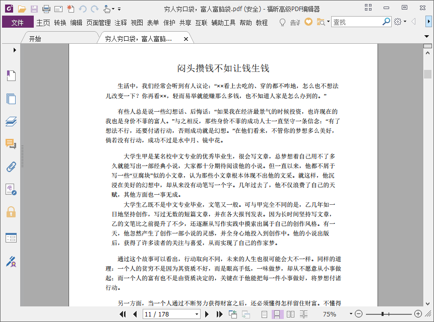 获取财富的机会对于每个人来说都是公平的,但现实中贫富差距不仅依然存在,而且差距越来越大。作者通过大量事例,从心态、观念、人性弱点、目光、胆识、人脉等方面进行了全面梳理和系统分析,道出了口袋里有没有钱只是穷和富的一种外在形式,脑袋里所想的才是决定你是穷困还是富有的决定性因素。本书的写作目的就是为了给迷茫中前行的广大读者们以启示,希望读者学习并参照书中所讲,改变自己的“穷人思维”,从此懂得变通,拓展人脉,用经验和知识武装自己,从而迅速地找准自己的位置,走向成功,实现由穷到富的转变。