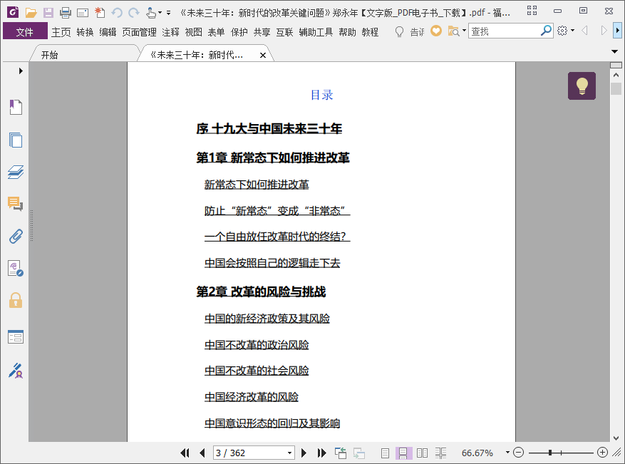 《未来三十年:新时代的改革关键问题》目录