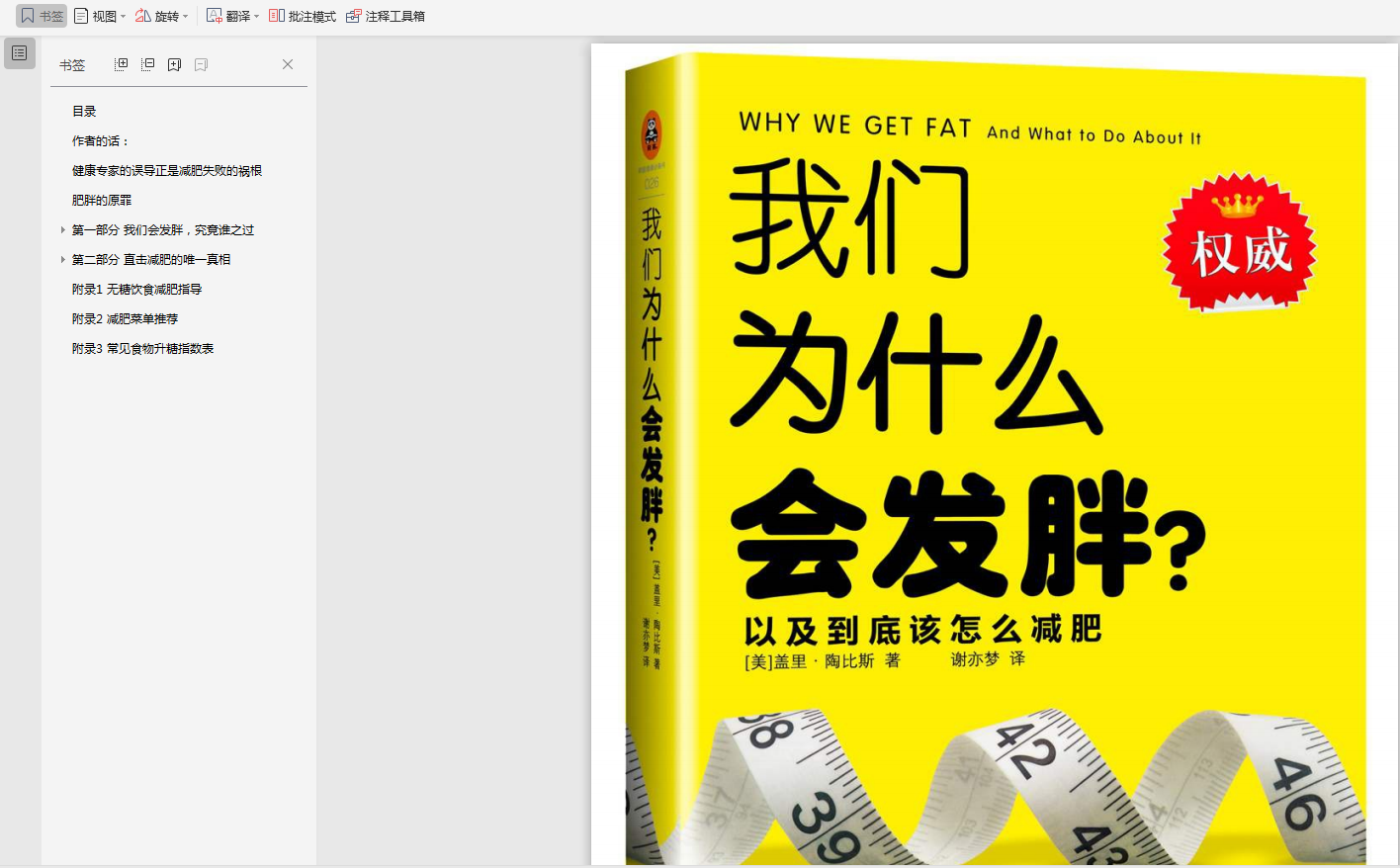 我们为什么会发胖是作家盖里陶比斯写的长篇作品,主要讲述了人体为何会发胖,减肥失败的原因,节食减肥的优缺点,恢复健康的方法等等指南。