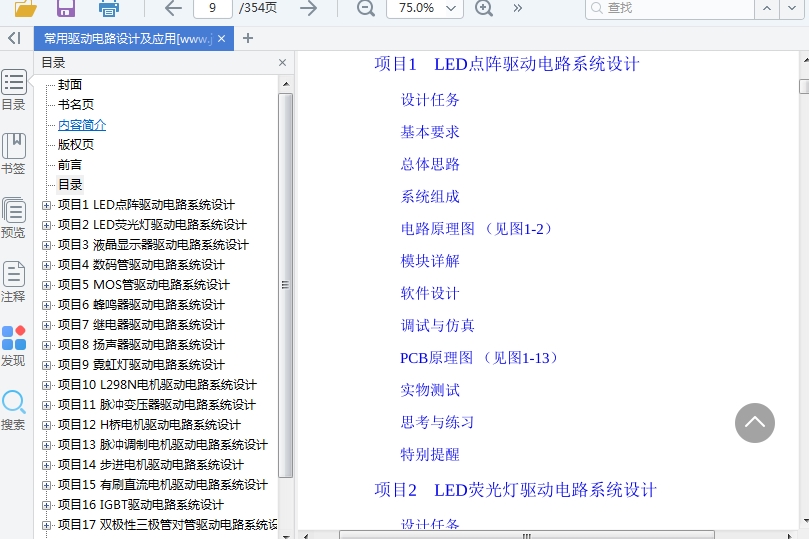 计;项目11介绍了脉冲变压器驱动电路系统设计;项目12介绍了H桥电
