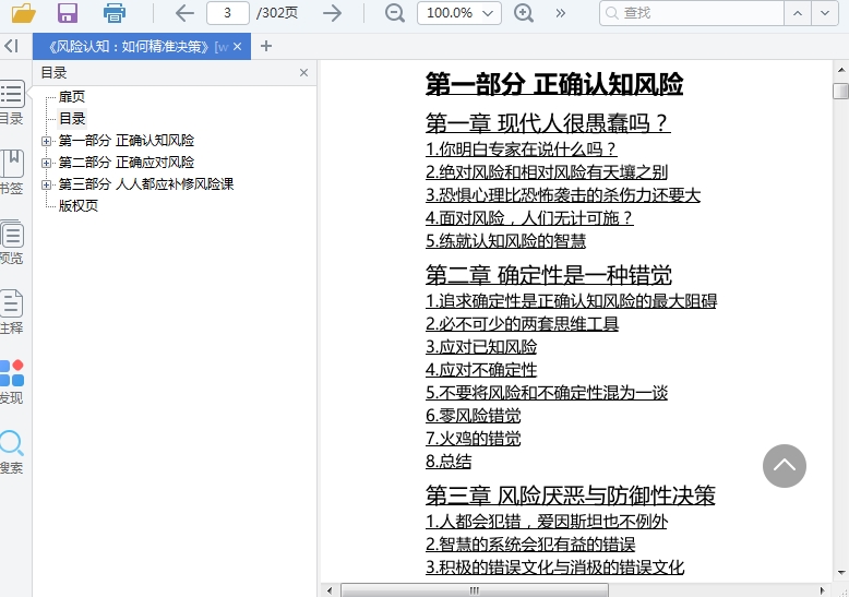 风险认知:如何精准决策,这本书是由以为社会心理学家著作的一本决策类型书籍,全书一共拥有三大部分,每个章节都为读者提供重要的知识点,值得一看。