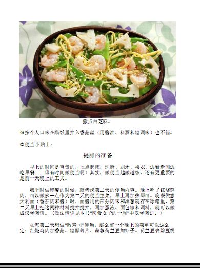 质?”“适合夏日便当的烹饪方式能再给介绍吗?”,故此介绍一下夏日