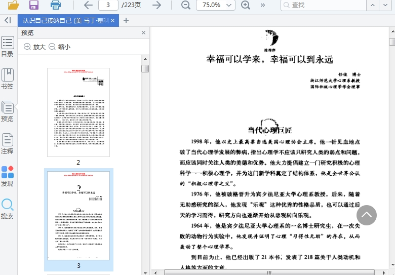 过200万册,其中最受好评的是首次引入中国的《真实的幸福》、《活出最乐观