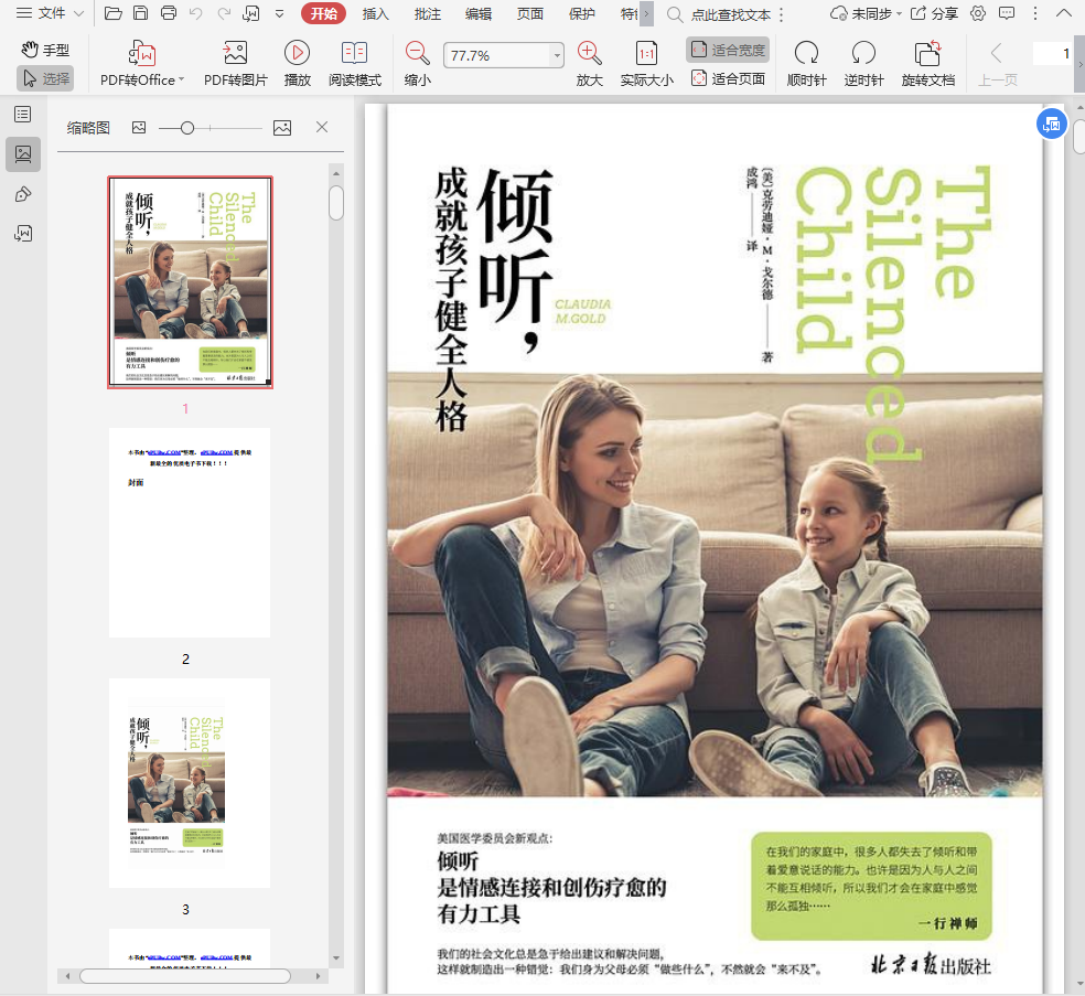 倾听指的是一方面要倾听父母的内心,给他们提供精神上的支持,一方面要倾听孩子,他们的行为背后都是对交流的渴望。读懂了他们的行为所表达的语言,就能减少问题孩子,培养高质量的亲子感情连接。有很多真知灼见,读下来有很多收获,值得钻研一番。