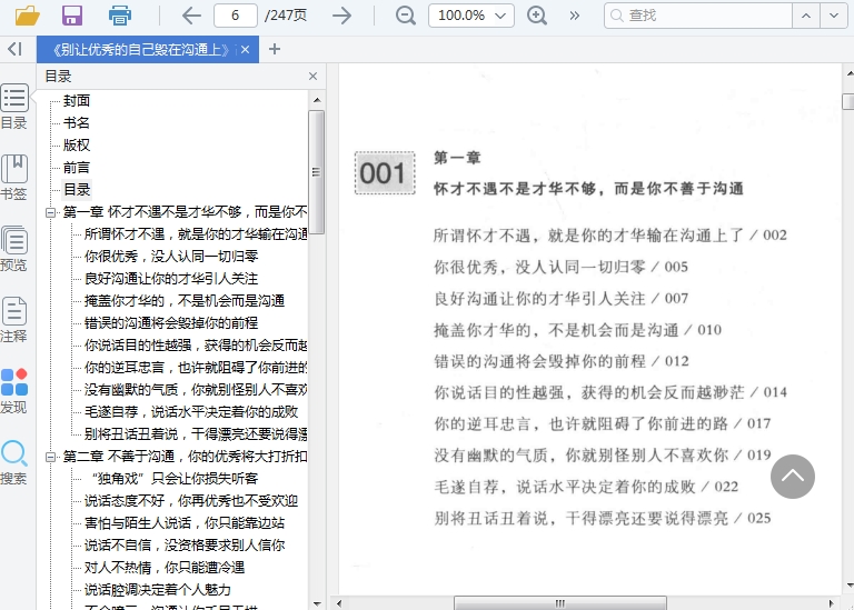别让优秀的自己毁在沟通上是一本教你如何高效沟通的,书中一共分为了七大章节介绍,帮助读者能够认识到沟通的重要性,同时还可以学习到提升沟通能力的技巧。