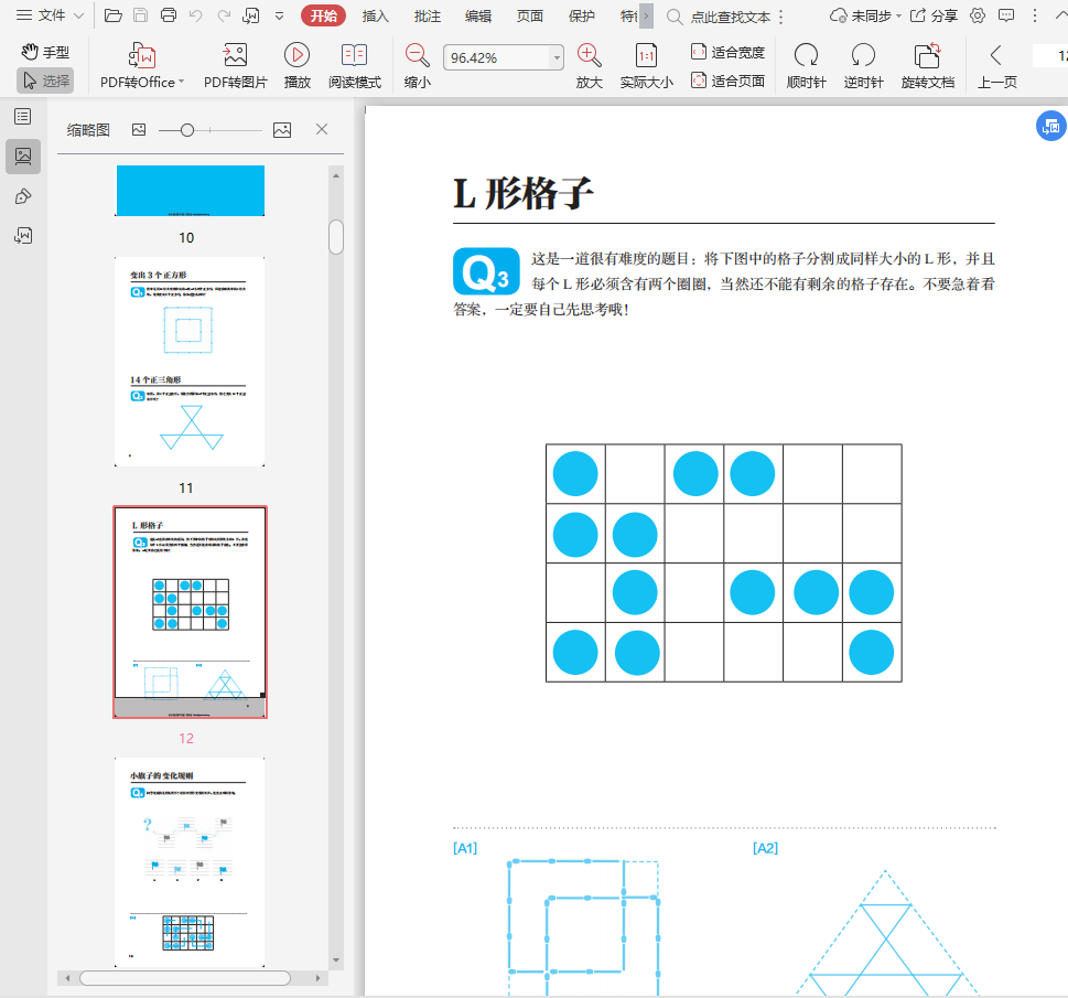 每个L形必须含有两个圈圈,当然还不能有剩余的格子存在。不要急着看