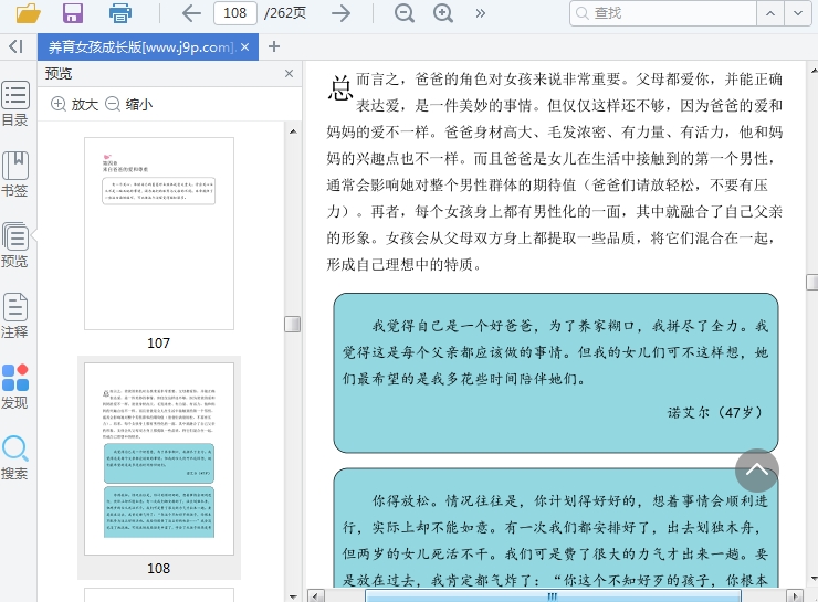 2、就我自身的经验而言,女孩一生的安全感、自我评价、择偶标准和获得幸福的能力,都和父亲的陪伴、赞美、保护、**密不可分。至于父亲应该怎么做,请打开这本《养育女孩(成长版)》。