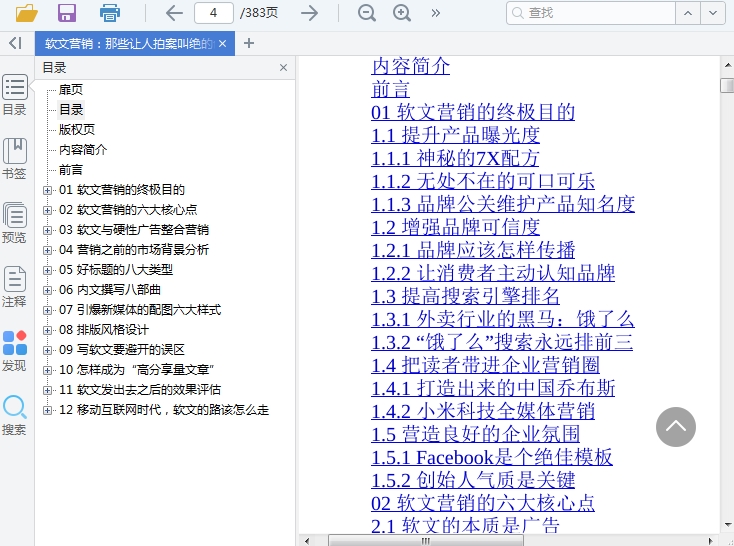 软文营销:那些让人拍案叫绝的创意文案,这是一本教你如何写好软文的电子教程书籍,书中为用户从定位、命名、配图、扩散一条龙说起,教你轻松成为软文营销高手!