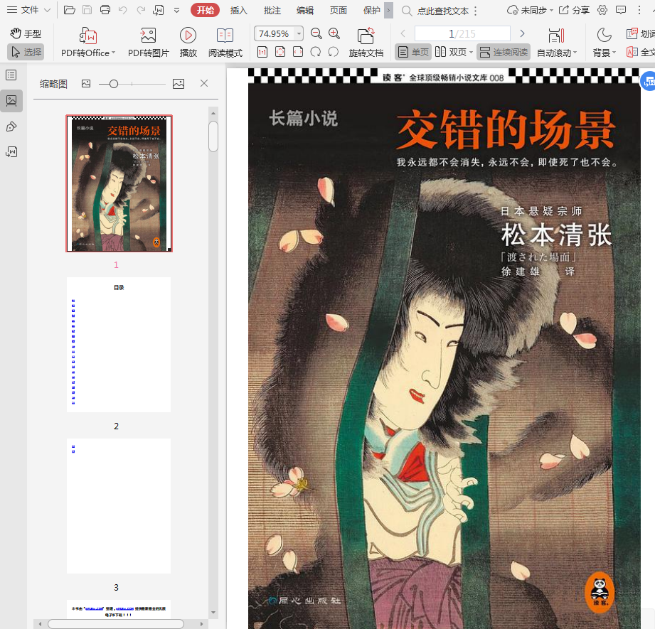 交错的场景是作者松本清张写的长篇推理小说,主要讲述了警察香春偶然间发现一本小说中的作案情节和真实案件一模一样,于是顺着这本小说找到了破案线索,也引发了一起谋杀案。