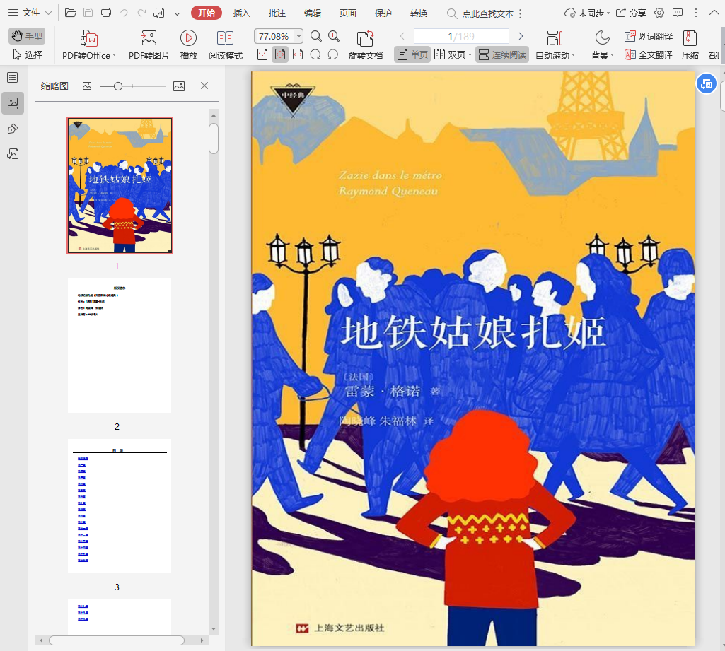 1、此书算是有些“奇”的书。故事可以说是小姑娘扎姬在巴黎舅舅家一天两夜的情形。但实际上根本没什么故事性。