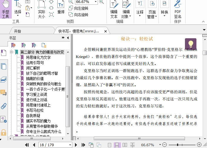快书写,慢思考,这是一本教你如何使自己的脑子更有创意的书籍,书中一共有三大部分内容,读者读完此书,相信会让你的创意更加活跃。