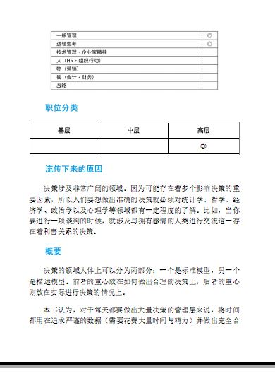 本书由哈佛、斯坦福、MIT史隆管理学院等世界商学院毕业生认可的团队——全球工作组(Global Taskforce K.K.)精选的涵盖企业管理、人力资源、物流、财务、战略、逻辑、创新等商务领域的38本商业名著,并对其进行系统的归纳和分析,将这些历久弥新的财经书单,包括管理实践、市场管理、竞争战略、竞争优势、创新者困境、创新者解决方案、基业持久性、知识创造型企业、金字塔原则、第五纪律、怪诞行为学(可预测的非理性)、评估、以战略为中心的组织、获得并维持竞争优势、坚持什么和引领变革浓缩成一本书。其中的每一本都是“要了解这个领域必看不可的第一本书”,且以独特的解说和系统的关联图辅助相结合,让读者高效有价值地吸收各部门管理者必备的经营知识!