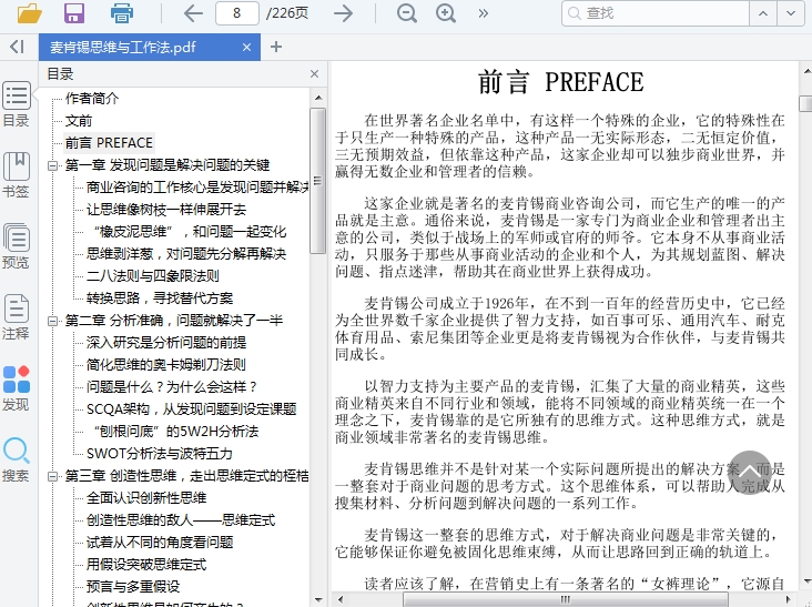 麦肯锡思维与工作法是一本知名的高效工作管理法书籍,书中对麦肯锡逻辑思维进行了深入的阐述,能够帮助你领略到自己工作的本质和精髓,让你轻松的解决遇到的问题。