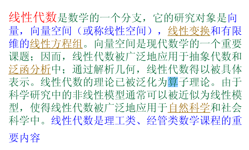 而线性方程组就是线性方程的扩展。这也就引出了我们今天所说的主题——线性代数