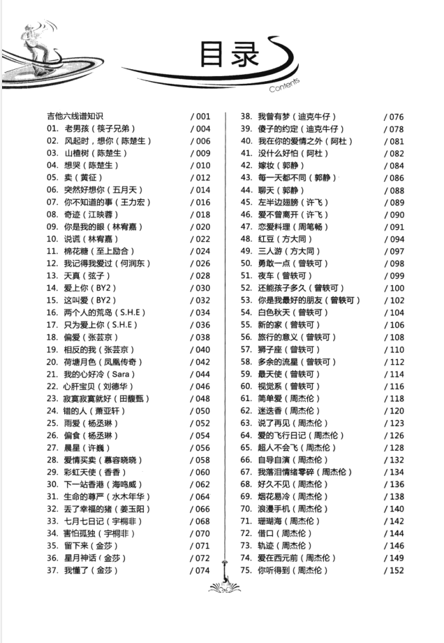 每首歌曲均附六线谱、简谱、歌词,弹奏者可随着吉他优美的伴奏尽情演唱。本曲集具有容量庞大,内容经典、高性价比,标注清晰、编校精湛、编排人性化的特点。
