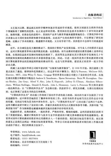 (但不是全部),网址为http://mitpress.mit.edu/algorithms/,我们会定期更新这些答案,因此需要教师每次授课前都到这个网站上来查看。