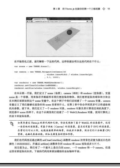 第1章讲述使用Three.js库的基本步骤。到这章结束的时候,你就可以创建出第一个Three.js场景。你可以直接在浏览器中创建三维场景,并制作动画。