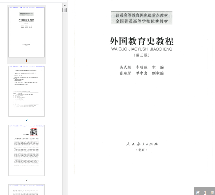 普通高等级教育国家级重点教材,全国普通高等学校优秀教材书籍,外国教育史教程第三版吴式颖给大,高清的的画质,完全使用,想要考333教育的朋友必备的复习材料书。