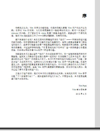 我本人是Vim的重度用户,使用Vim处理文本文档和编程超过十年之久,曾经写过很多介绍Vim的文章,也曾经有过为Vim写一本书的念头,直到我看到这本《Vim实用技巧》。书中的内容远远超过我所知所想,如果你以为自己是个Vim中级用户,读完前3章后,你就会发现自己依然是个初学者。在Vim领域,把此书誉为“宝藏”并不为过!