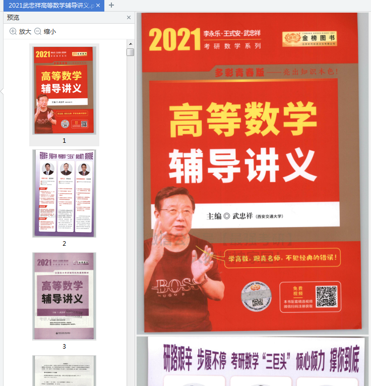 武忠祥老师的高数课思路清晰,由简到难,比较适合前期基础较薄弱的同学,这里为准备考研的同学推荐这本2021武忠祥高等数学辅导讲义多彩青春版本,高清的内容,全本本。