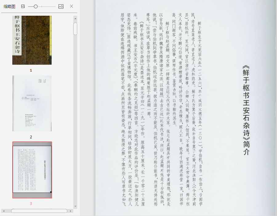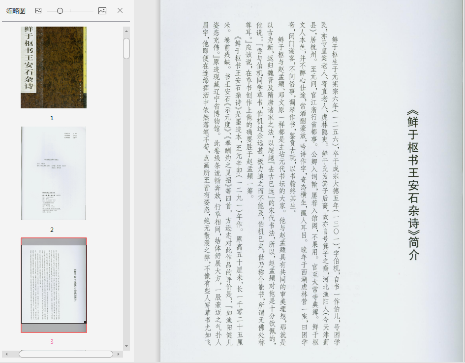 鲜于枢,至元间,官江浙行省部事。公卿入词翰,屡荐入馆阁,晚年于西湖虎林营一室,不问俗事,闭门谢客,调琴作诗,常酒酣豪放,吟诗作字,奇态横生,醒人耳目,鉴赏古玩,以书翰终其生。可以说这是一本难得的有关于古代杂诗的珍贵宝典,读者定要好好翻阅与学习。