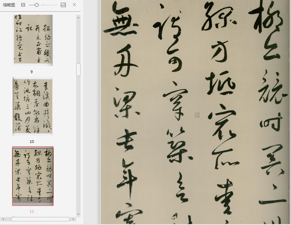 鲜于枢与赵孟頫,邓文原一样都是元代书坛的大家,他与赵孟頫具有共同的审美理想,那就是以古为新,返归魏晋及隋唐诸家之法,以超越“去古已远”的宋代书法,所以,赵孟頫对他是十分赏识的,他说:“尝与伯机同学草书,伯机过余甚远,极力追之而不能及,伯机已矣,世乃称仆能书,所谓无佛处称尊耳。”应该说,在草书创作上他的确要胜于赵孟頫一筹。《鲜于枢书王王安石杂诗》是墨迹本,至元辛卯(一二九一)年作。原高五十厘米,长一千零二十五厘米。卷前残缺。书王安石《示元度》,《奉筹之见招》等四首。方逊志对此作品的评价是“如渔阳健儿姿态充伟”。原迹现藏于辽宁省博物馆,此卷线条流畅奔放,行草相间,结体舒展大方,一股豪放之气扑人眉宇,他即便在连绵挥洒中依然笔落不苟,点画所至皆有姿态,绝无散漫之弊,不像有些人写草书尤如飞蓬蔓草,他的作品转折是提按清晰可辨的,是对书法艺术极为投入的表现。