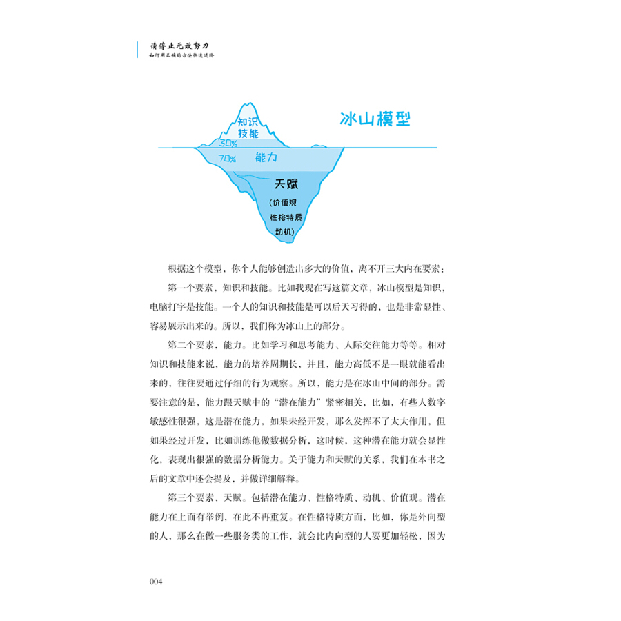 很多时候,我们不是不努力,只是没找到正确的努力方法。本书从发掘天赋、提升能力、选择平台、回归自己等几大方面详细阐述了努力的正确模式。书里所讲的关于努力的方法与思路可以用来分析我们生活、学习和工作中遇到的大多数问题。