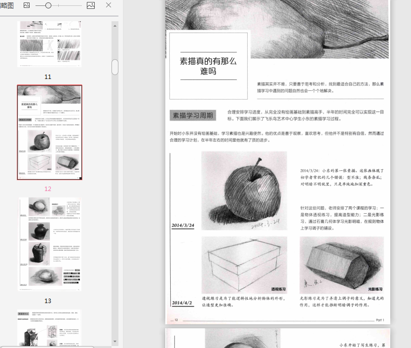 让事情变简单的方法就是利用它的规律,万事万物都有规律,素也不例外。从文艺复兴时期开始先贤们就已经系统地整理出了学习素描的程式。而我们要做的就是,提炼出适合当下快节奏生活的,素描的学习方法,用最短的时间达到最好的效果。这也是本书的初衷所在从一个苹果开始,也就是从简单开始,是我们总结出的学习素描的快速进阶的钥匙。如同达·芬奇图鸡蛋样,这能最快也最简单地打开素描大门,并让我们走得更远。所以在接下来的时间内,跟随本书的学习进程,你会发现你的素描能力会以可见的速度飞速提升,国出完整作品的那一天也指日可特。