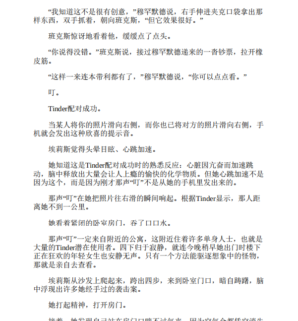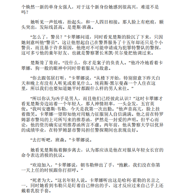 任何符号,也没有句号。哈利知道卡翠娜会明白,他并不是不在乎她,而是他不喜欢打冗长的短信。