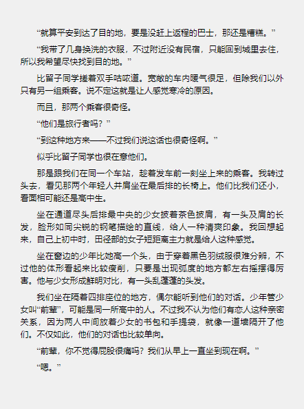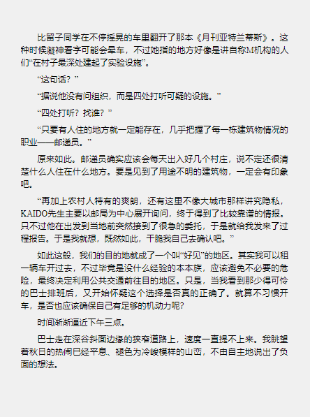 王寺似乎还有点活力,说要在附近散散步。“魔眼之匣”左右两侧虽然是险峻的高山,但我从来没有走进去过。那里虽然有点调查的价值,不过朱鹭野刚在早饭时劝告过不想死就别进去,所以她有点不高兴。