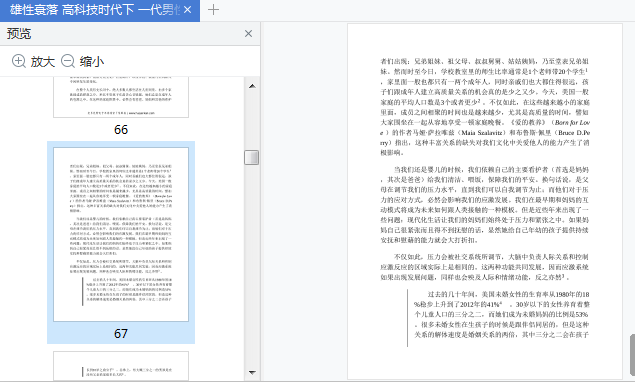 在男权社会中讨论雄性的衰落,这是一个很耐人寻味的话题。在阅读完这本书后,我渐渐理解现在的妈宝、脆弱男的生长环境。其实男权社会给予男性机会,也给予男性压力,当压力多于机会就会导致男性社会化进程迟缓或受阻,不能成长为一个合格的男性。也许在各个家庭中,给予男性多一些鼓励和尊重,多一些时间和空间,也许男性会更有责任和担当,家庭更和谐。