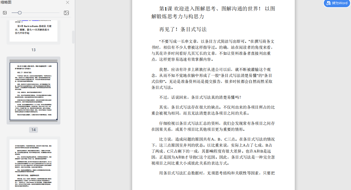 其实,条目式写法存在很大的缺点。不仅列出来的各项目所占的比重会被视为相同,而且无法清楚表达各项目之间的关系。