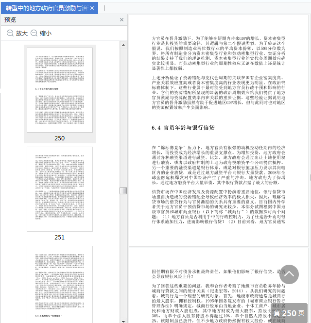 及其他重要的政府治理现象。Landry(2008)和Xu(2011)均强调,中国政府间关系体现为政治集权与经济分权相结合的治理体制。周雪