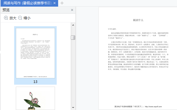 得到多大益处,因为这样阅读,犹如囫囵吞吃东西,不曾辨出真滋味来。文艺作品比较寻