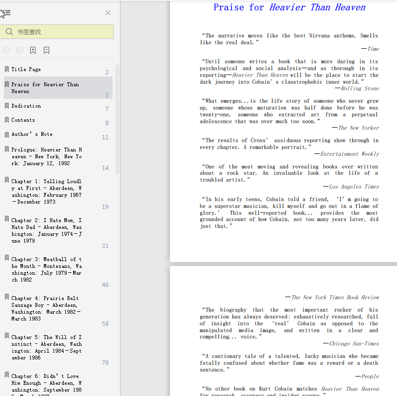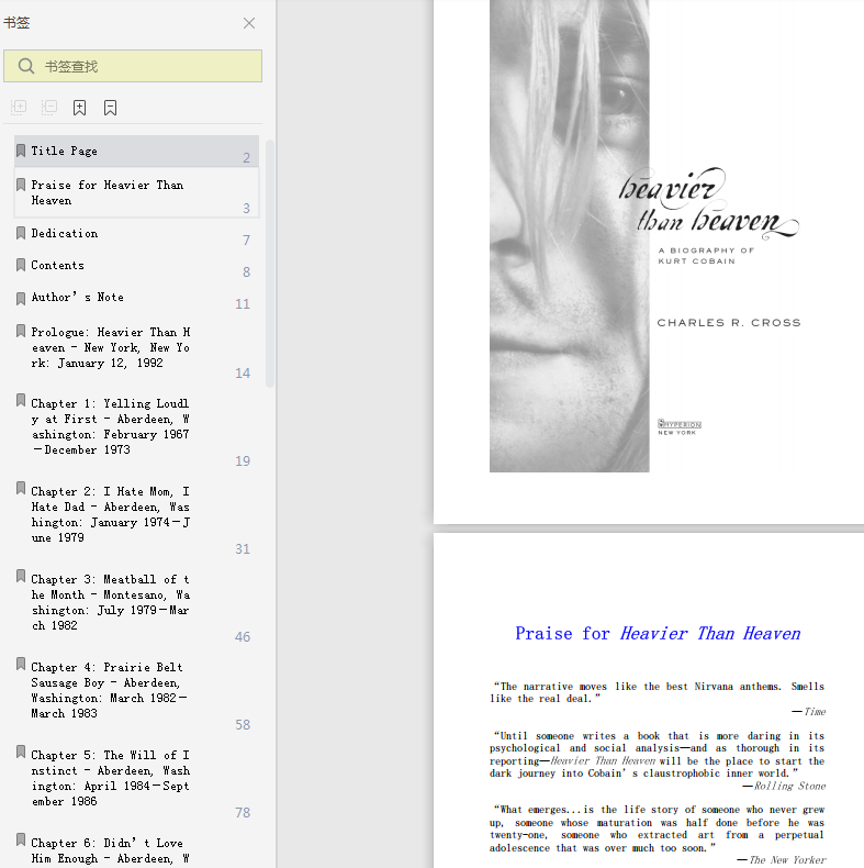 本书是美国著名音乐记者查尔斯·R. 克罗斯写就的权威科特·柯本传记。作者通过4年的调查、400多次采访以及对柯本未出版的日记、歌词和家庭照片等珍贵资料的抽丝剥茧,生动再现了这个传奇摇滚巨星短暂而炽烈的生命足迹——从悲惨的童年到孤苦的青春期,再到在阿伯丁进行音乐探索的日子,直至最终成名后在公众和媒体的巨大压力下自杀身亡。《重于天堂》不仅为读者呈现20世纪八九十年代美国地下摇滚乐的辉煌群像,更将其中心人物科特·柯本不为人知的一面重新发掘出来——这不仅是一个充满争议的音乐巨星的故事,更是一个始终渴望爱的、孤独的孩子的故事。