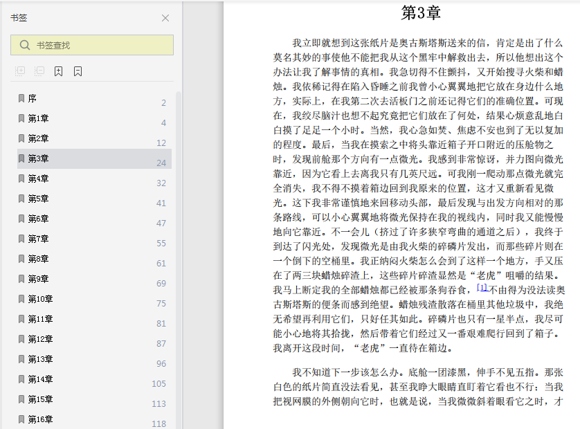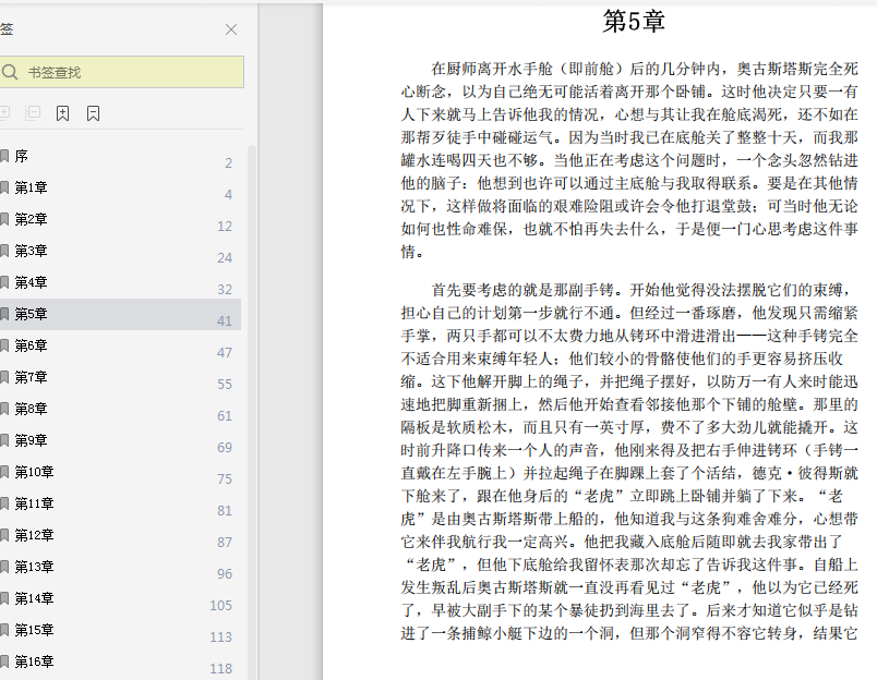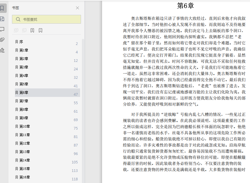 当我借着一盏应急提灯朦胧的光亮,从挂在舱内的一块碎镜片中看自己的模样时,那副样子竟使我感到了一种不可名状的畏惧。回想起我所装扮的那个真人的可怕模样,我甚至禁不住浑身发抖,一时间几乎不想继续装扮下去。但我们必须果断地行动,彼得斯和我终于上了甲板。