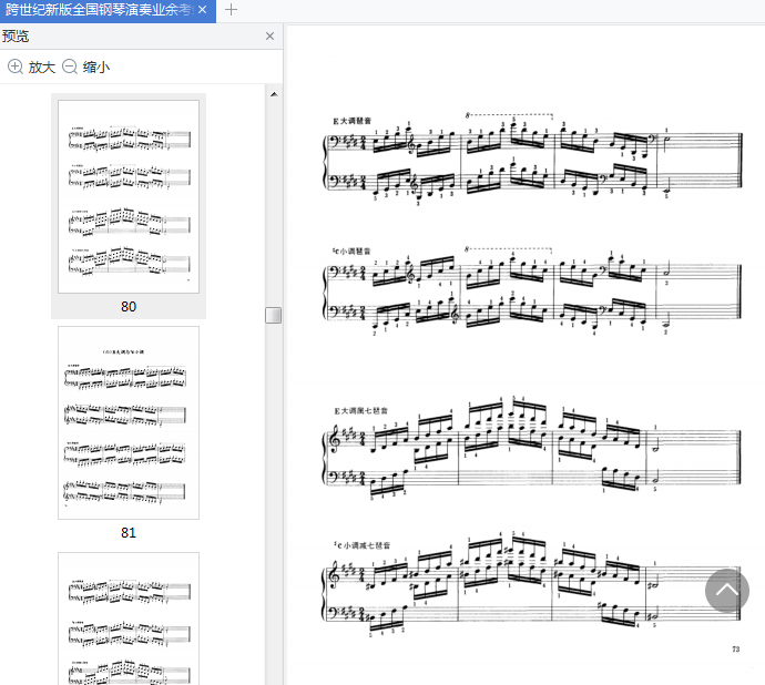 1.音阶:大调及其关系和声小调音阶,四个八度,双手同向;