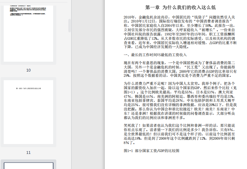 第一,为什么我们的收入这么低。经过三十年的改革开放后,我们的收入和其他国家相比差距越来越大了,我们工作不努力吗?我们不够节俭吗?都不是。