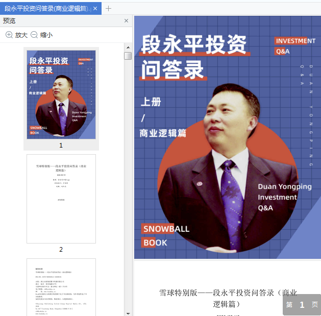 雪球特别版——段永平投资问答录(商业逻辑篇)是雪球专刊出版的本,没有纸质书籍售卖,精品站这里段永平投资问答录商业逻辑篇给大家,读懂段永平的商业智慧,对各位的工作学习投资能有所帮助。