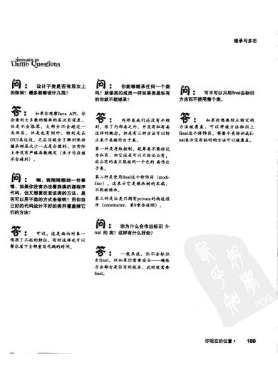 3.可以从方法里面返回值,声明了返回最好要返回(我敲代码时发觉时声明了返回不返回会报错的,但P78最后一个问题的回答并不是这样的?囧),一般情况下只能返回一个值,但是可以返回一个数组,再深一层的,可以返回ArrayList,换言之,只要你封装好了,可以返回任意数量任意类型的任意变量的任意组合。